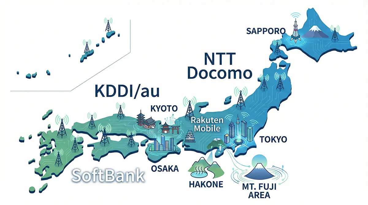 Nhật Bản có địa hình khó khăn—các tòa nhà chọc trời dày đặc ở Tokyo chặn tín hiệu, và địa hình núi non ở các khu vực nông thôn. Chất lượng eSIM của bạn hoàn toàn phụ thuộc vào nhà mạng Nhật Bản mà nó kết nối.