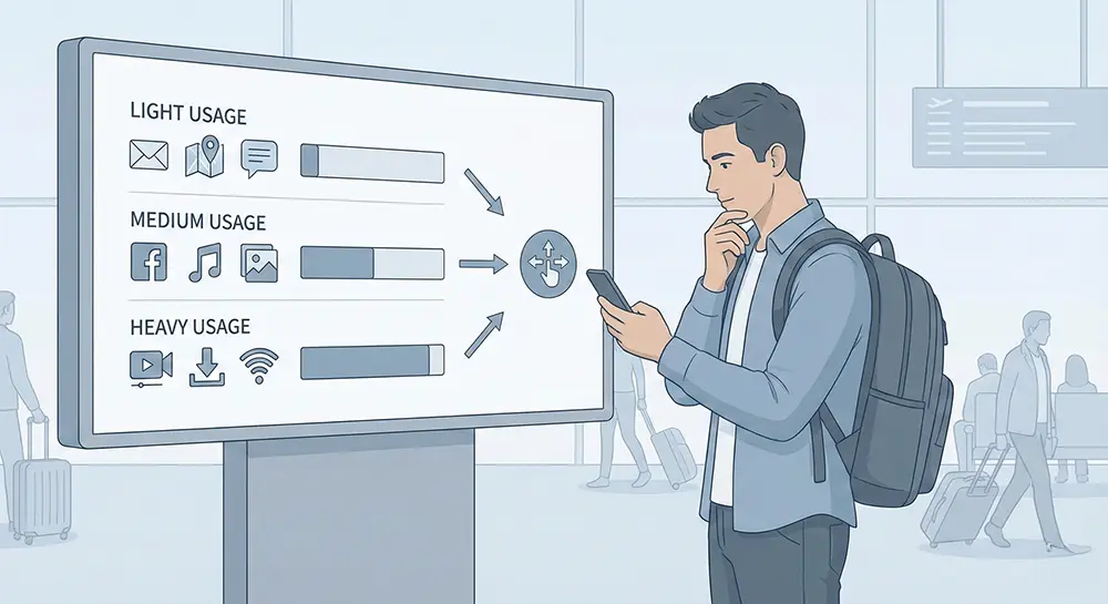 Entender tu estilo de viaje es clave. Las escapadas cortas a la ciudad, los viajes con mucho uso de navegación y el uso de redes sociales suelen funcionar perfectamente con planes de eSIM ilimitados. Los viajeros que trabajan de forma remota o transmiten con frecuencia pueden preferir paquetes de datos fijos más grandes en su lugar.