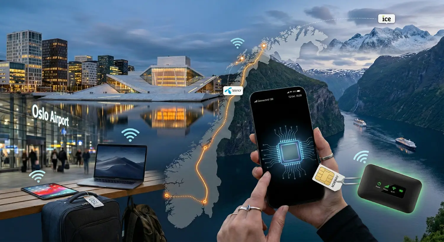איך לקבל אינטרנט בנורווגיה (2026): סים בשדה התעופה, סים תיירים מקומי, eSIM, ווי-פיי נייד ווי-פיי חינם