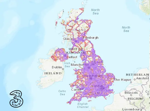 Three Täckning i Storbritannien