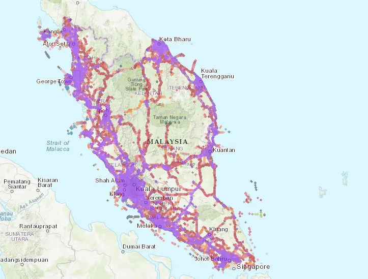 马来西亚的移动基础设施在以下地区可靠: